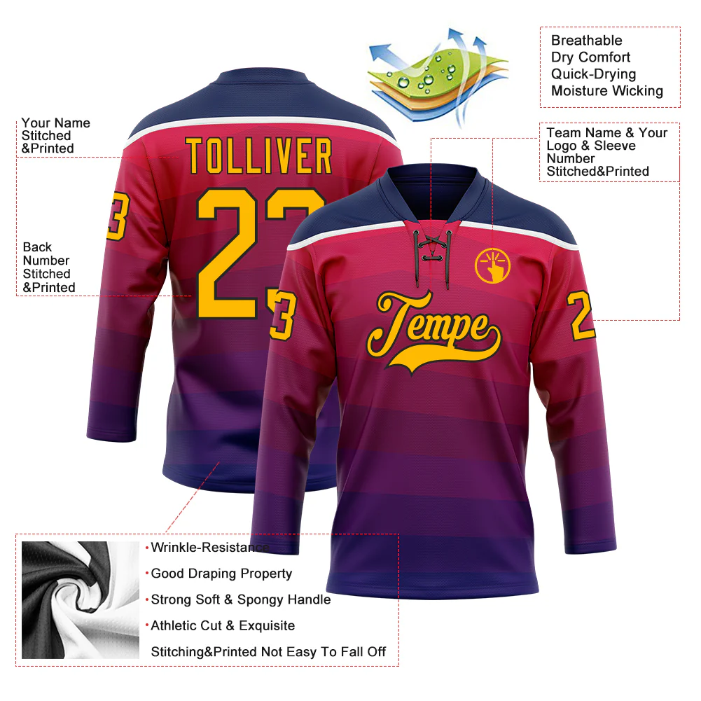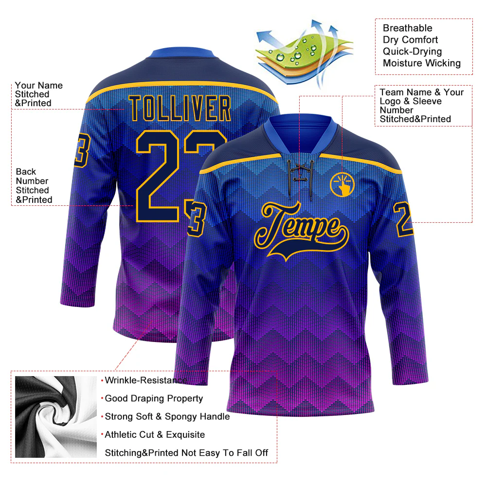 Custom Blue Navy Purple-Gold 3D Pattern Abstract Gradient Halftone Hockey Lace Neck Jersey
