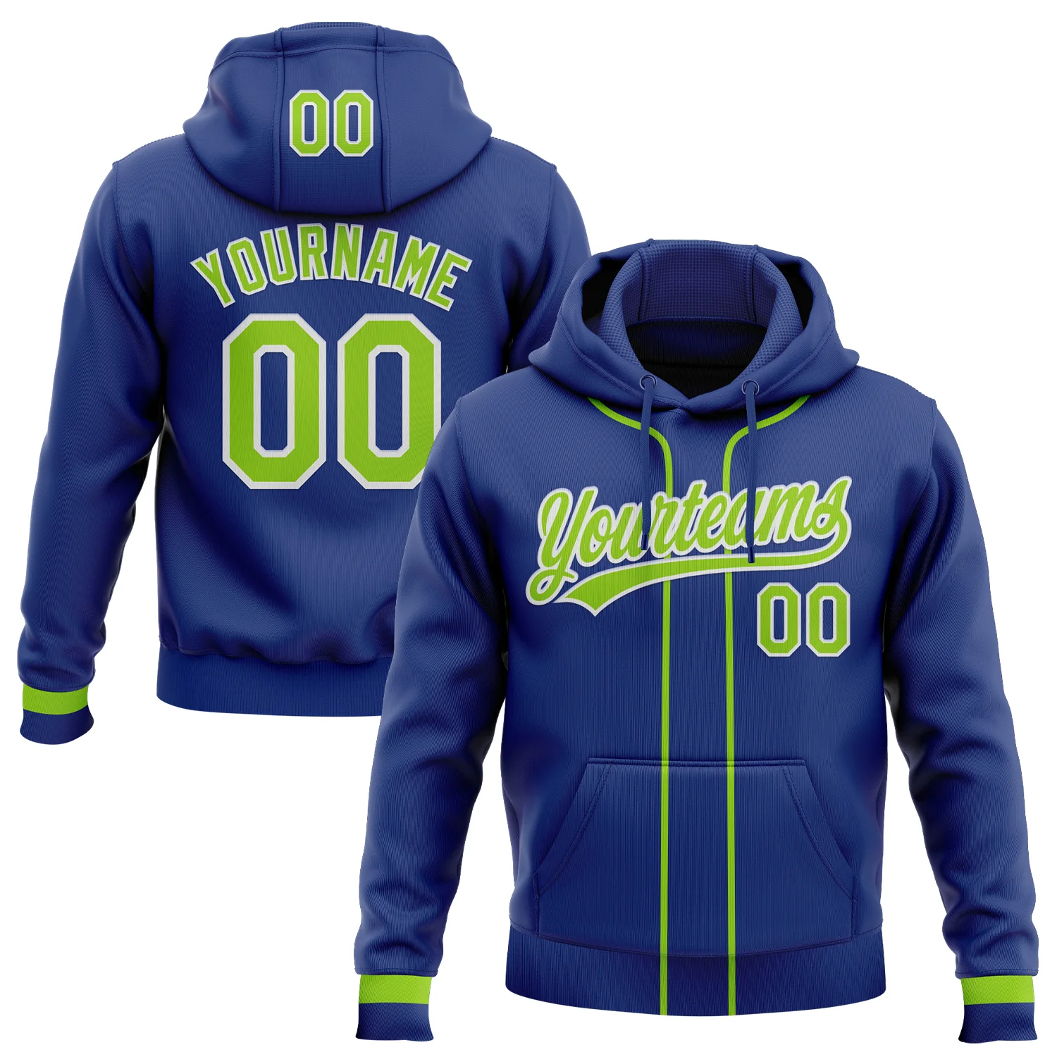 Custom Stitched Royal Neon Green-White Baseball Pullover Sweatshirt Hoodie