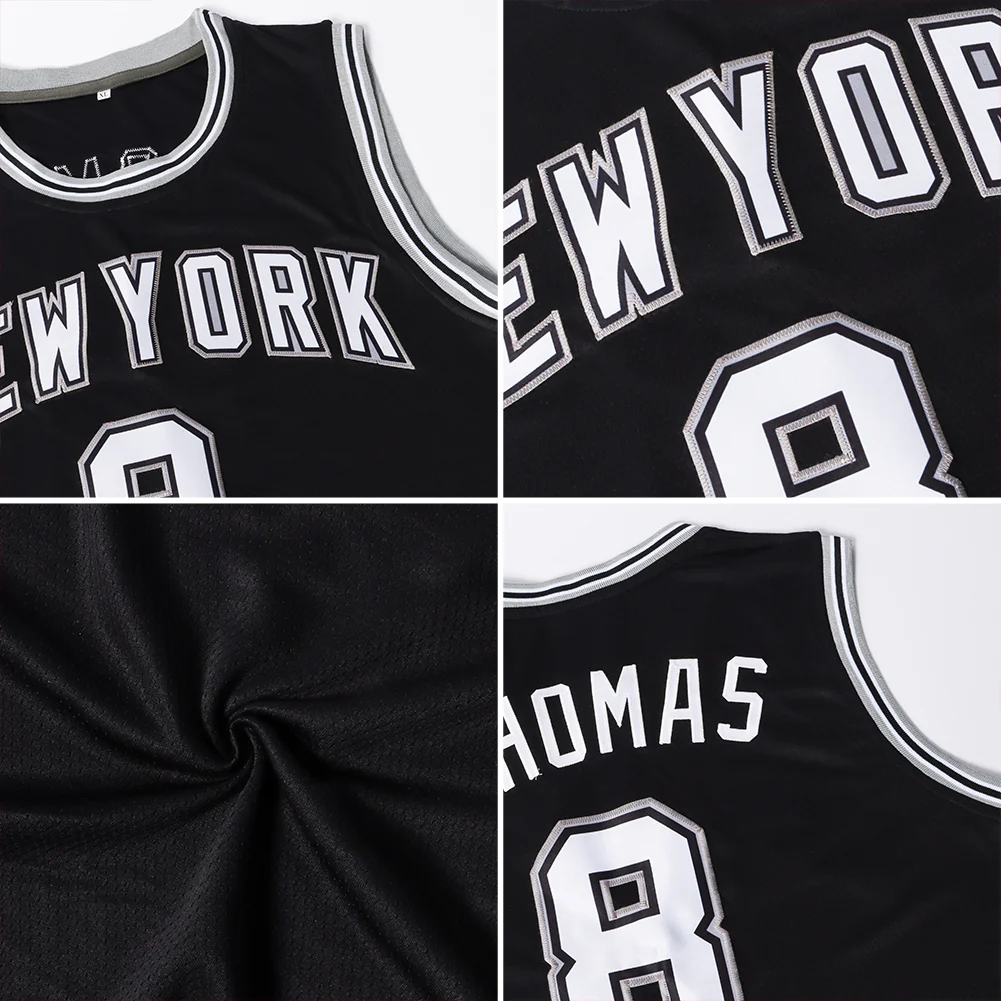 Custom Black Orange-Gray Authentic Throwback Basketball Jersey