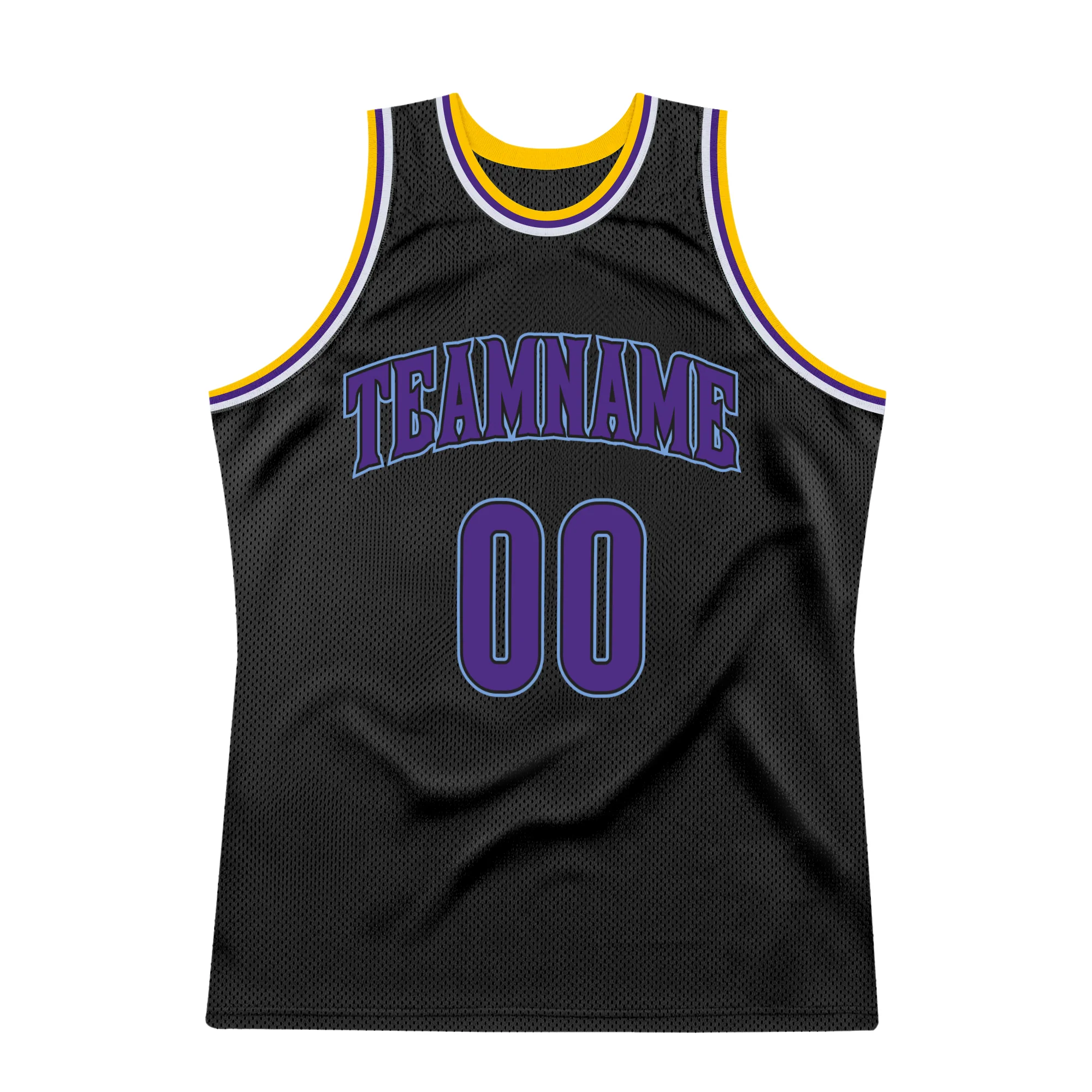 Custom Black Purple-Gold Authentic Throwback Basketball Jersey
