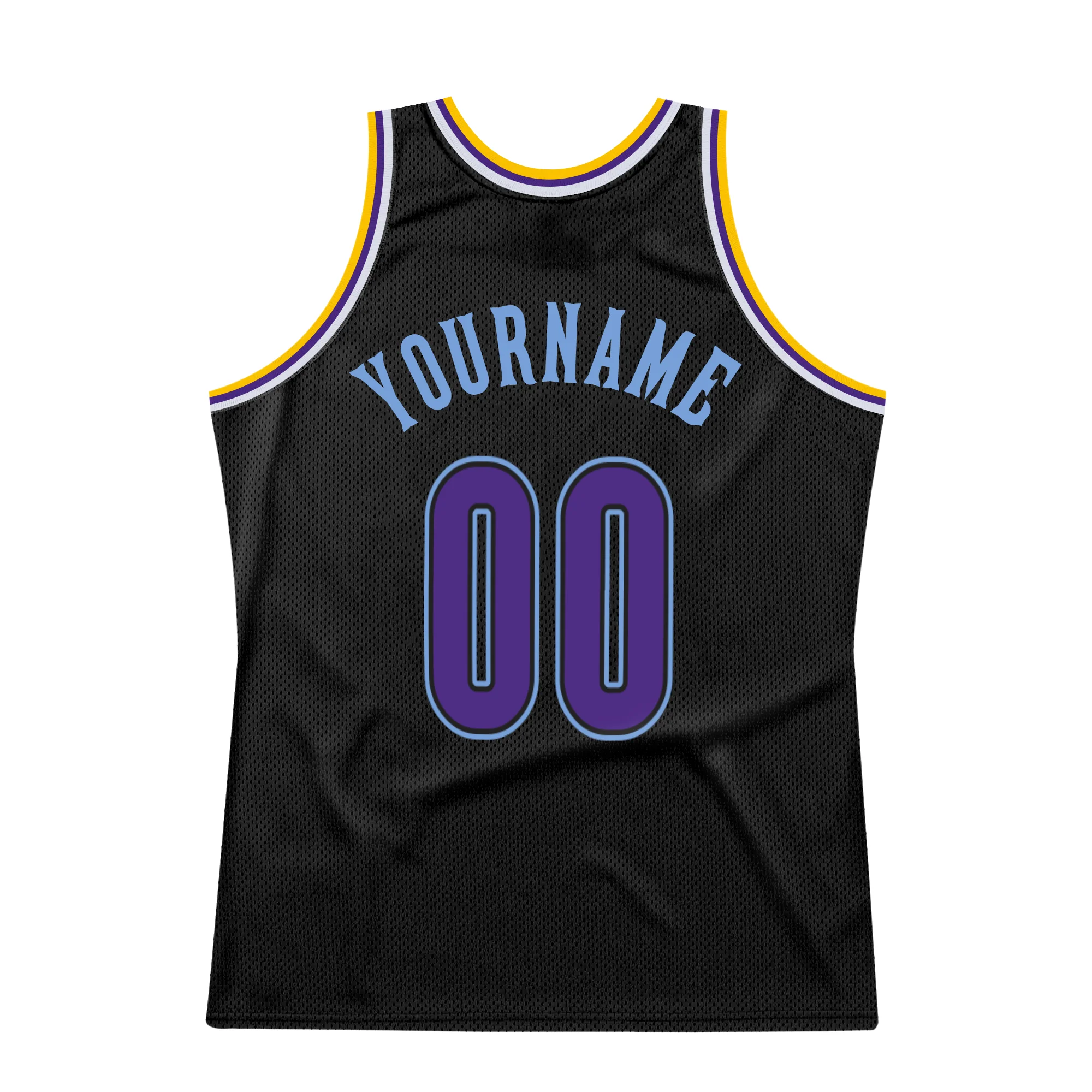 Custom Black Purple-Light Blue Authentic Throwback Basketball Jersey
