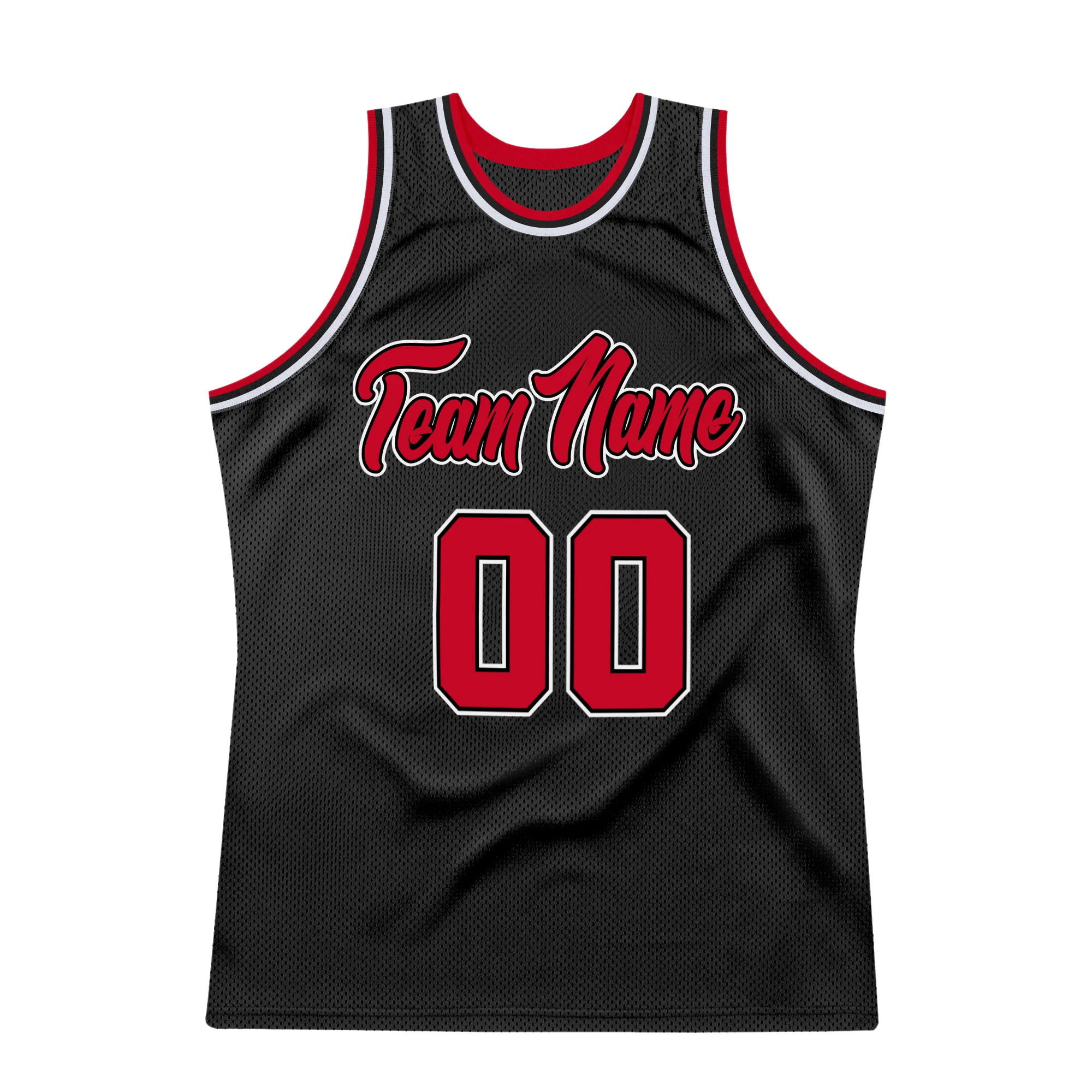 Custom Black Red-White Authentic Throwback Basketball Jersey