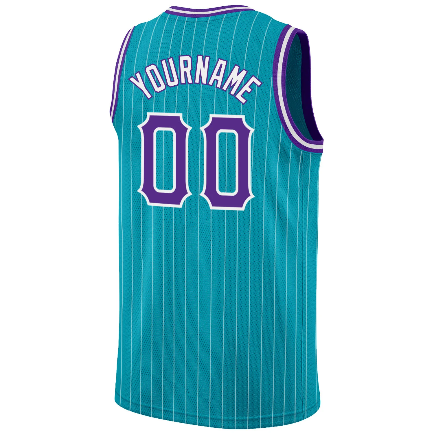 Custom Teal White Pinstripe Purple-White Authentic Basketball Jersey