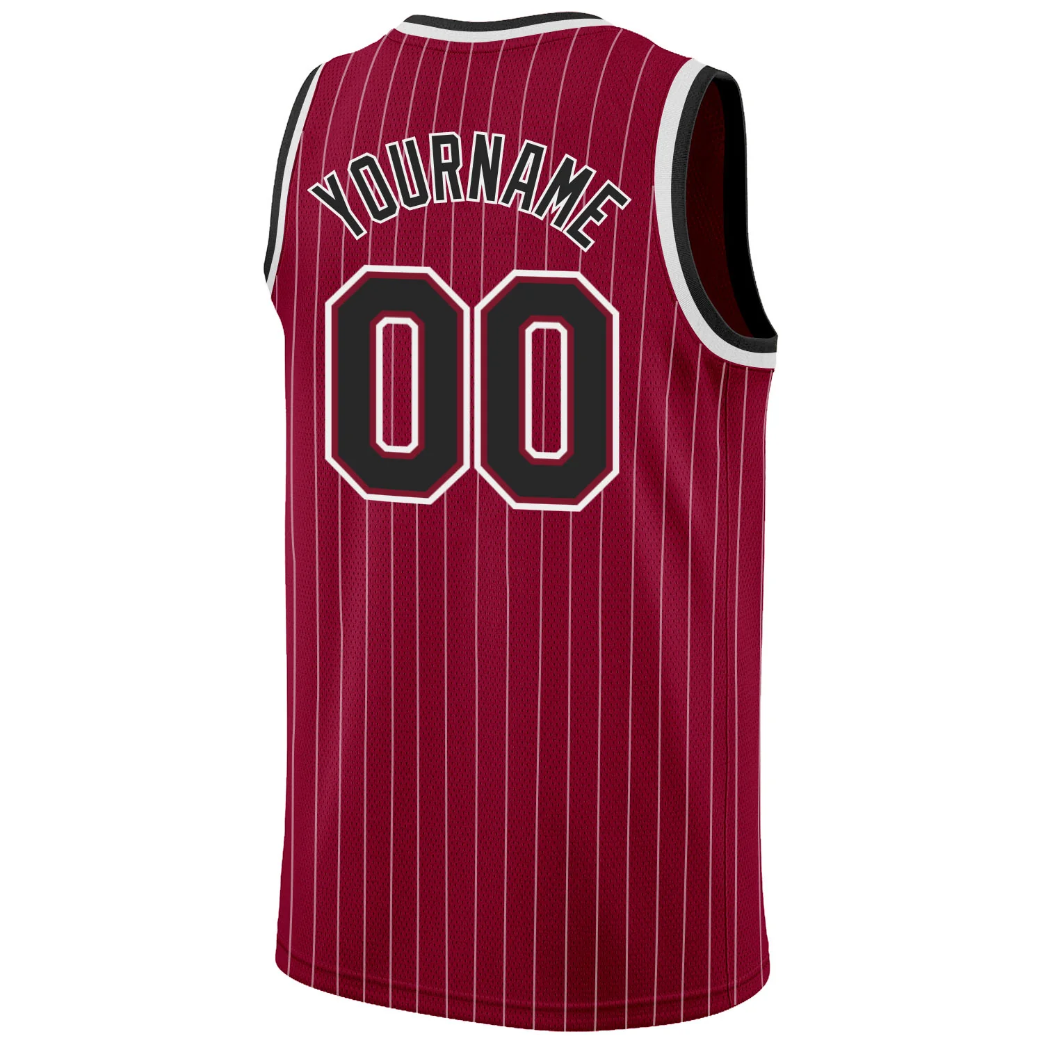 Custom Maroon White Pinstripe Black-White Authentic Basketball Jersey