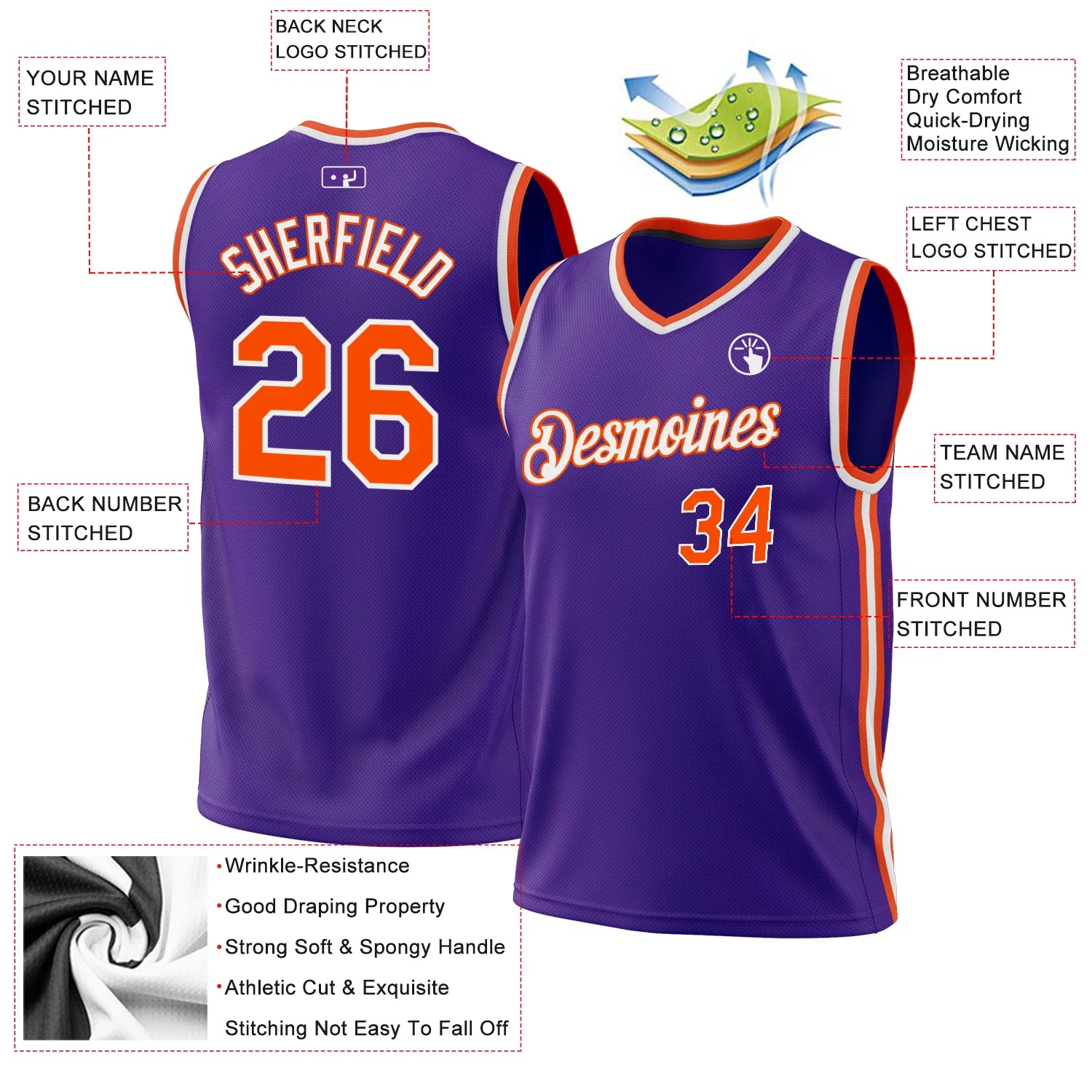 Custom Purple Orange-White Authentic Throwback Basketball Jersey