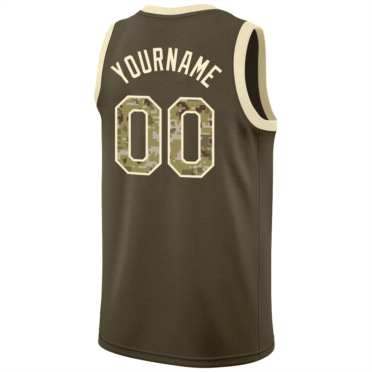 Custom Olive Camo-Cream Round Neck Rib-Knit Salute To Service Basketball Jersey