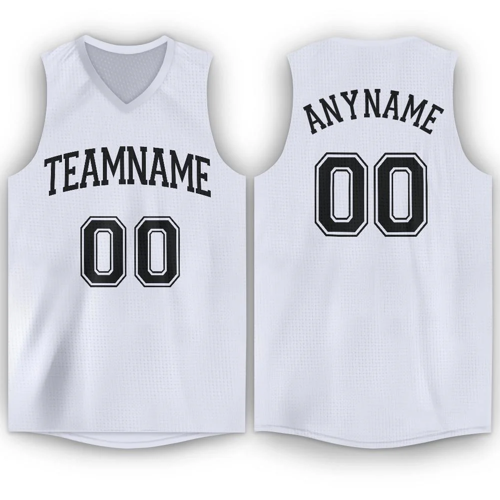 Custom White Black Round Neck Basketball Jersey