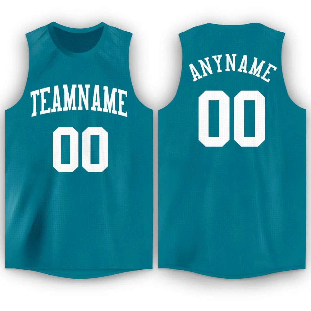 Custom Teal White Round Neck Basketball Jersey