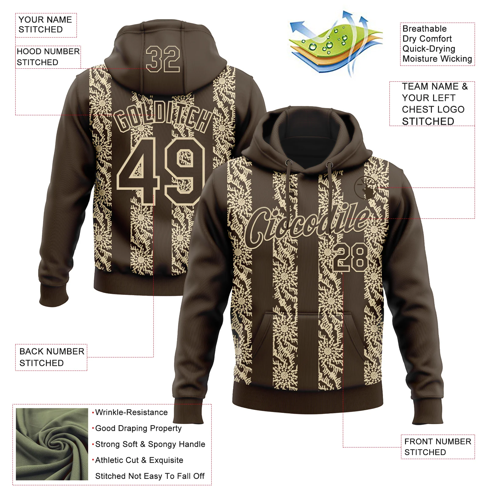 Custom Stitched Brown Cream 3D Pattern Design Abstract Shape Sports Pullover Sweatshirt Hoodie