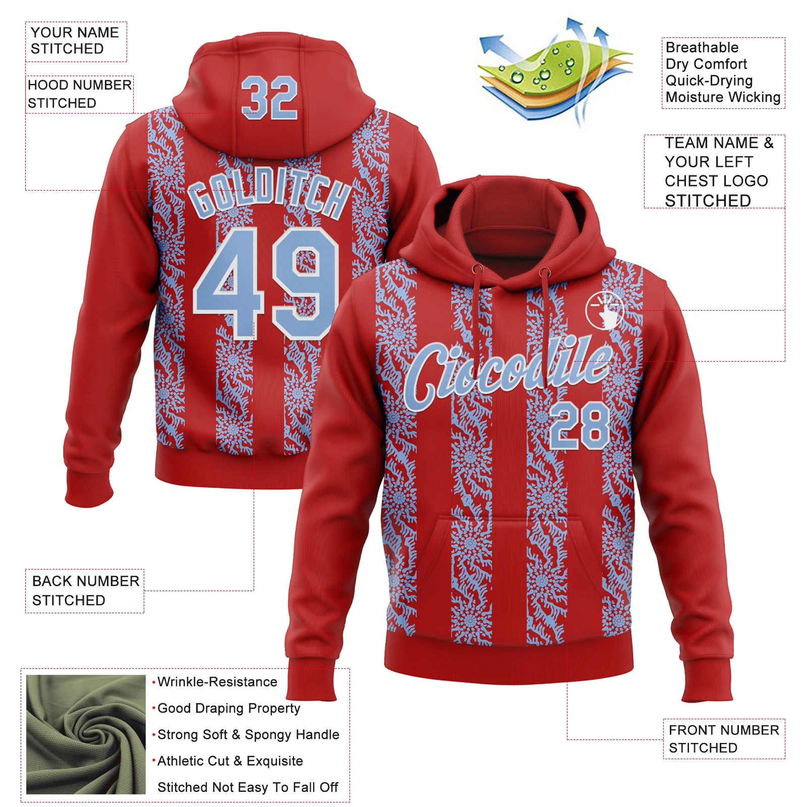 Custom Stitched Red Light Blue-White 3D Pattern Design Abstract Shape Sports Pullover Sweatshirt Hoodie