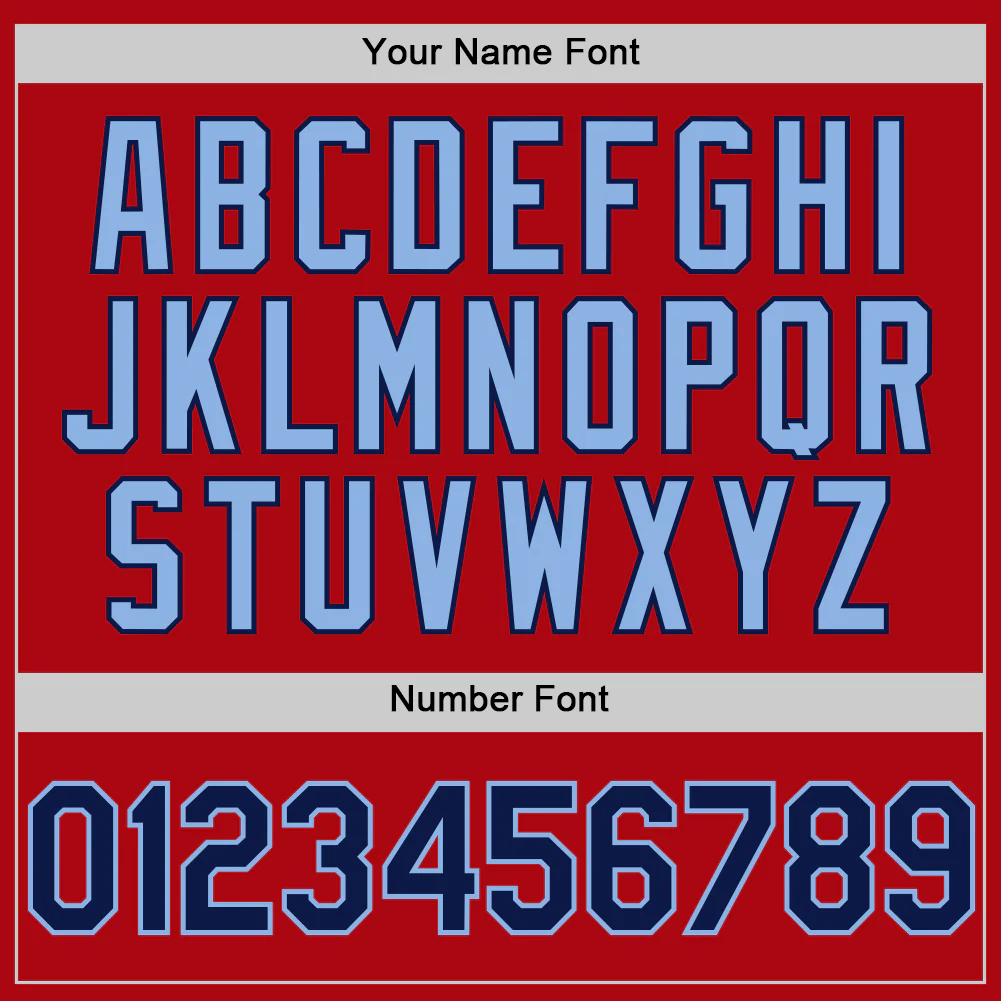 Custom Red Navy-Light Blue Bomber Full-Snap Varsity Letterman Two Tone Hoodie Jacket