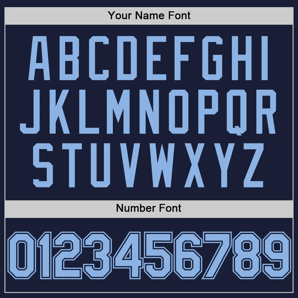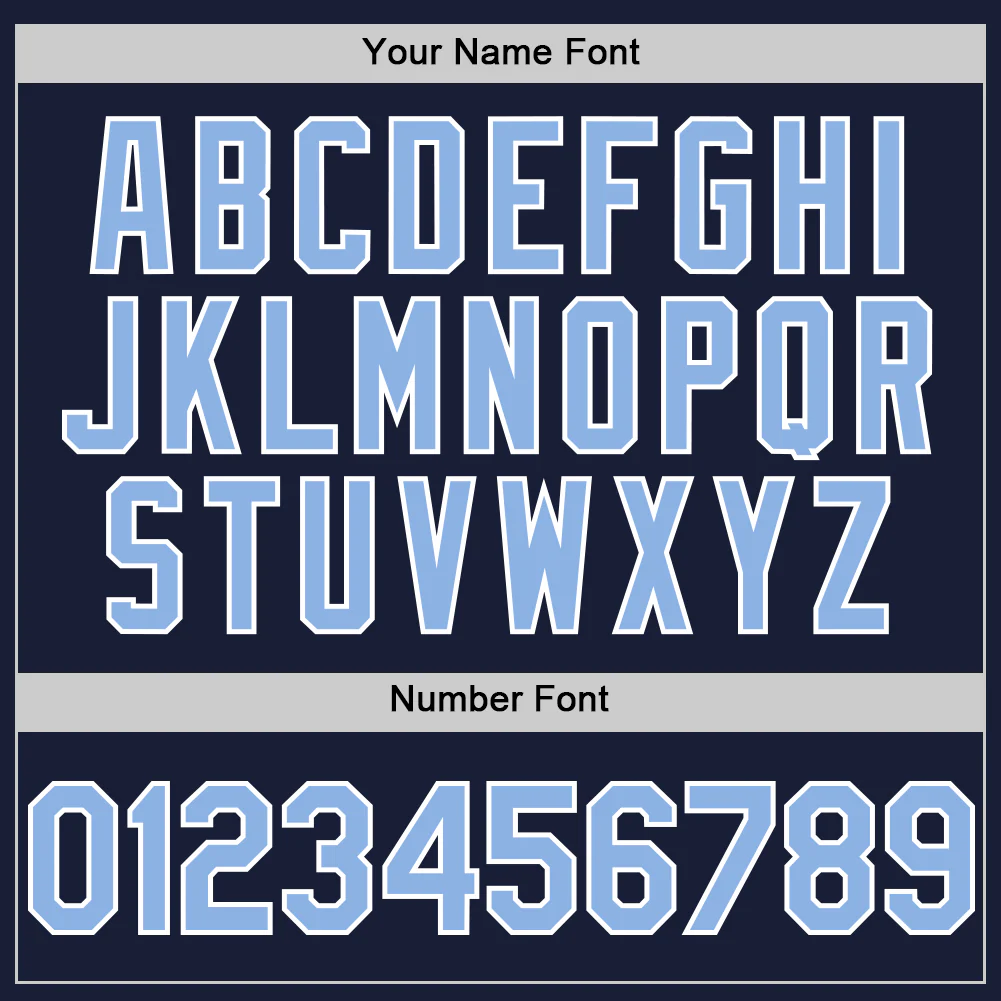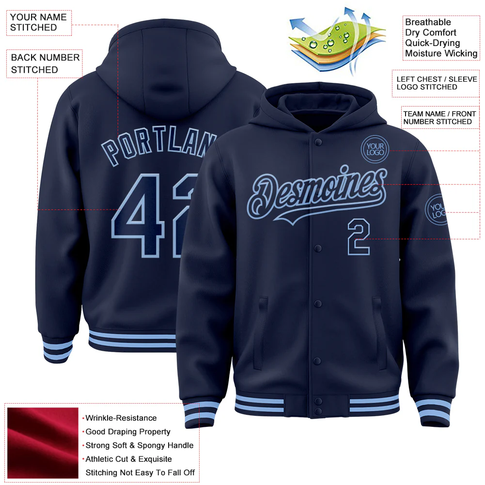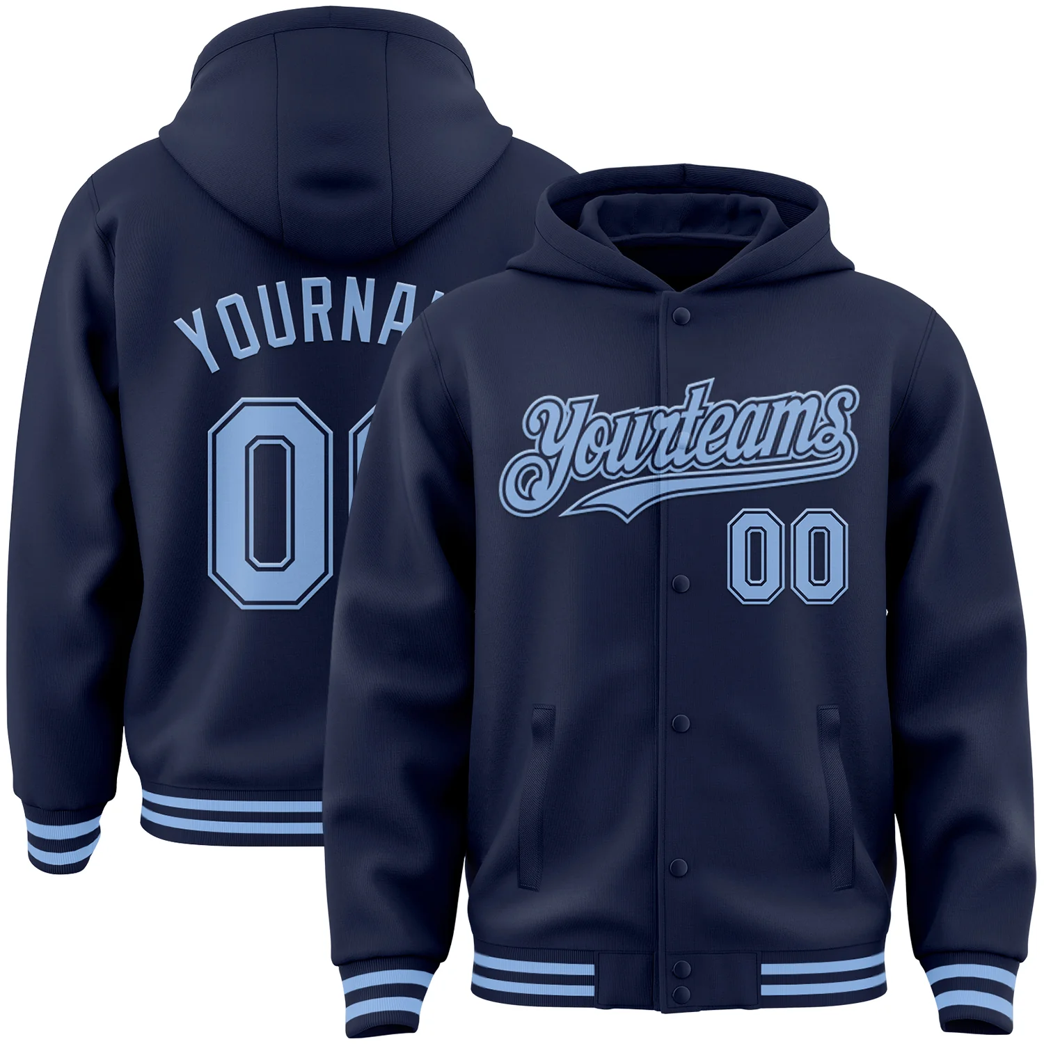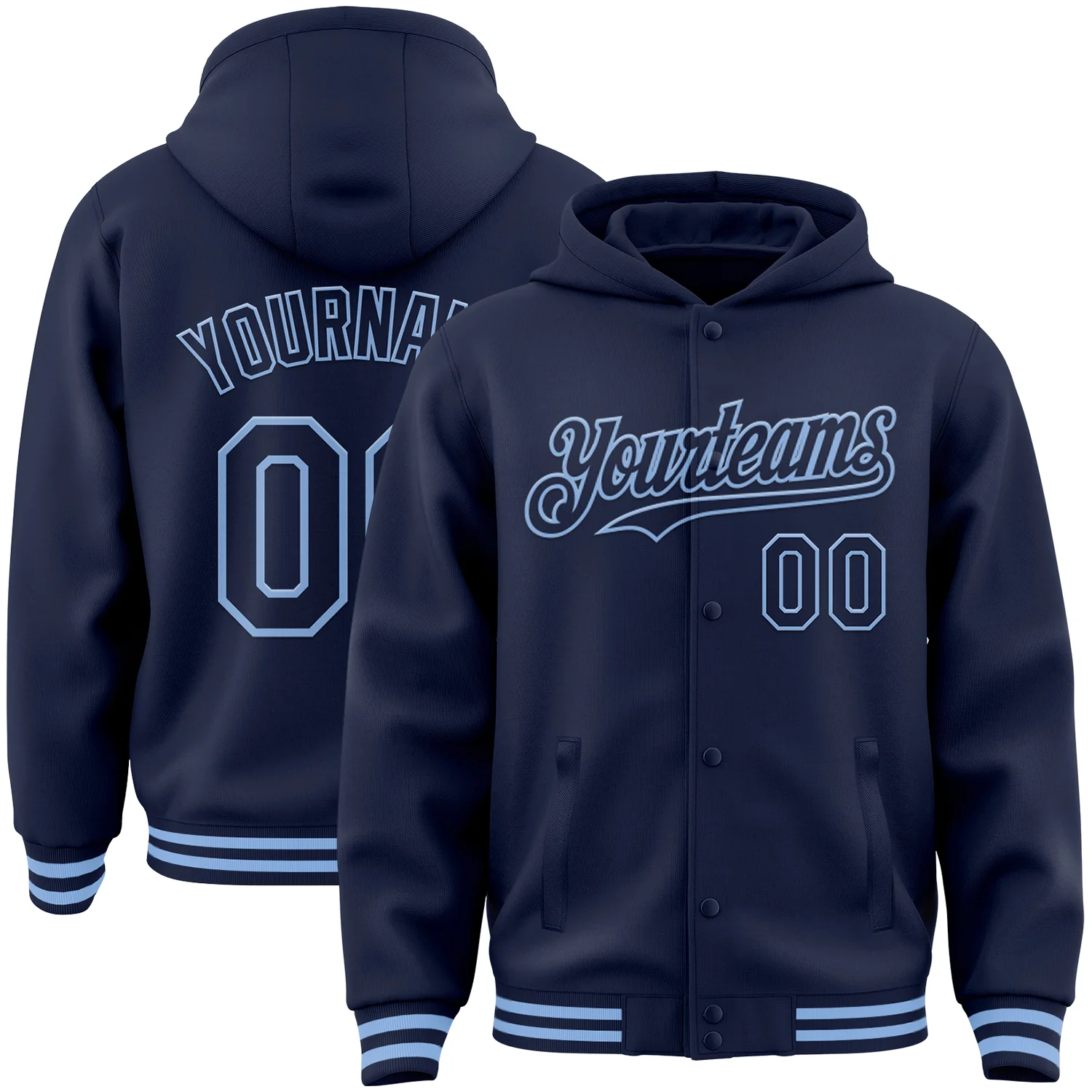 Custom Navy Light Blue Bomber Full-Snap Varsity Letterman Hoodie Jacket