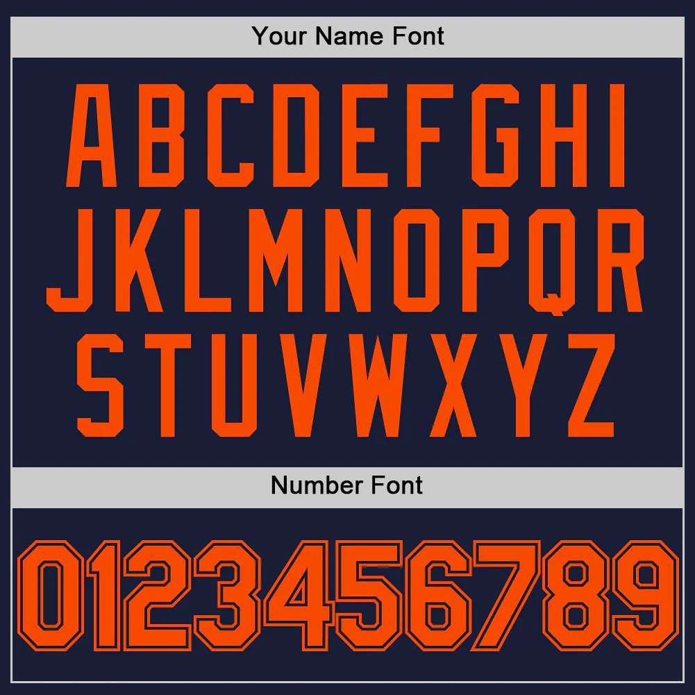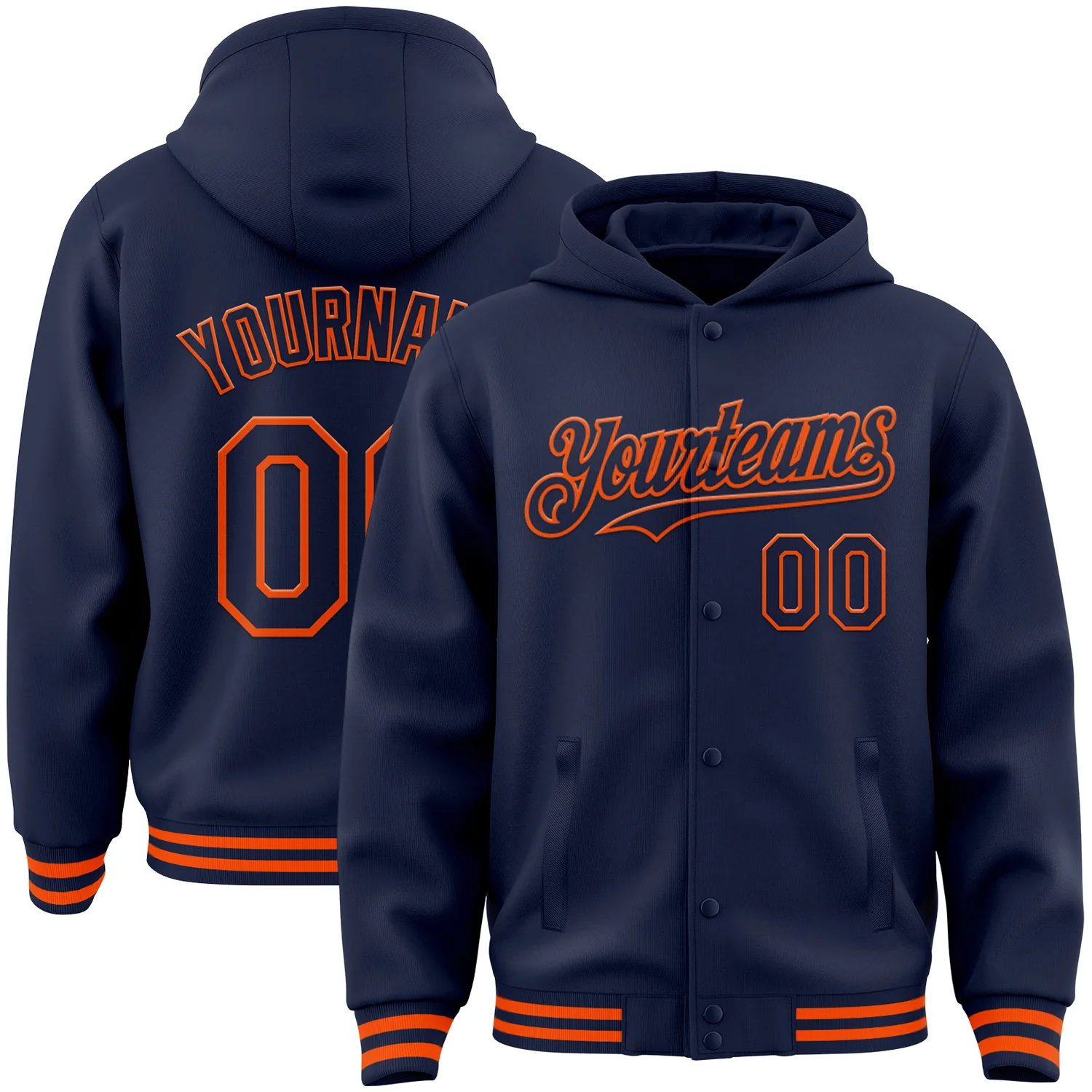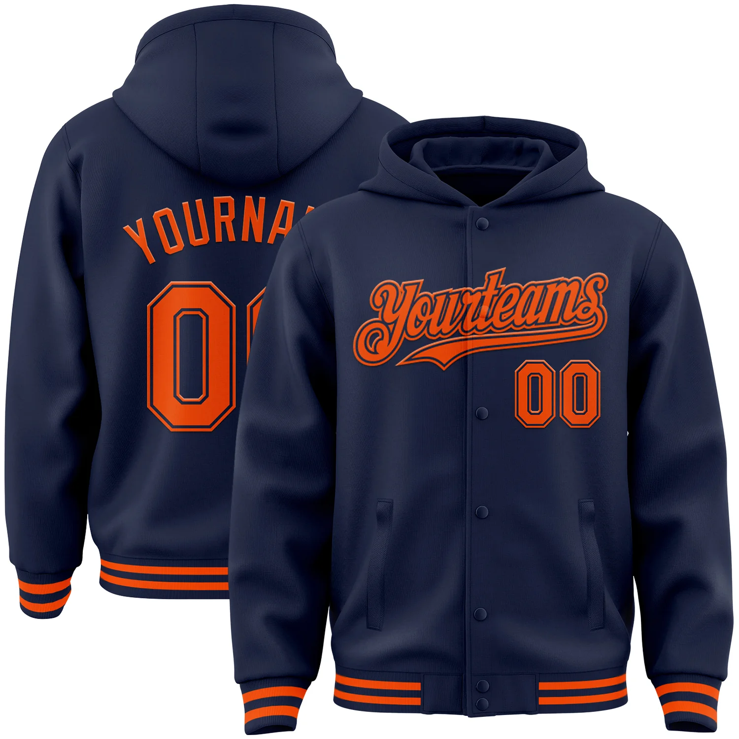 Custom Navy Orange Bomber Full-Snap Varsity Letterman Hoodie Jacket