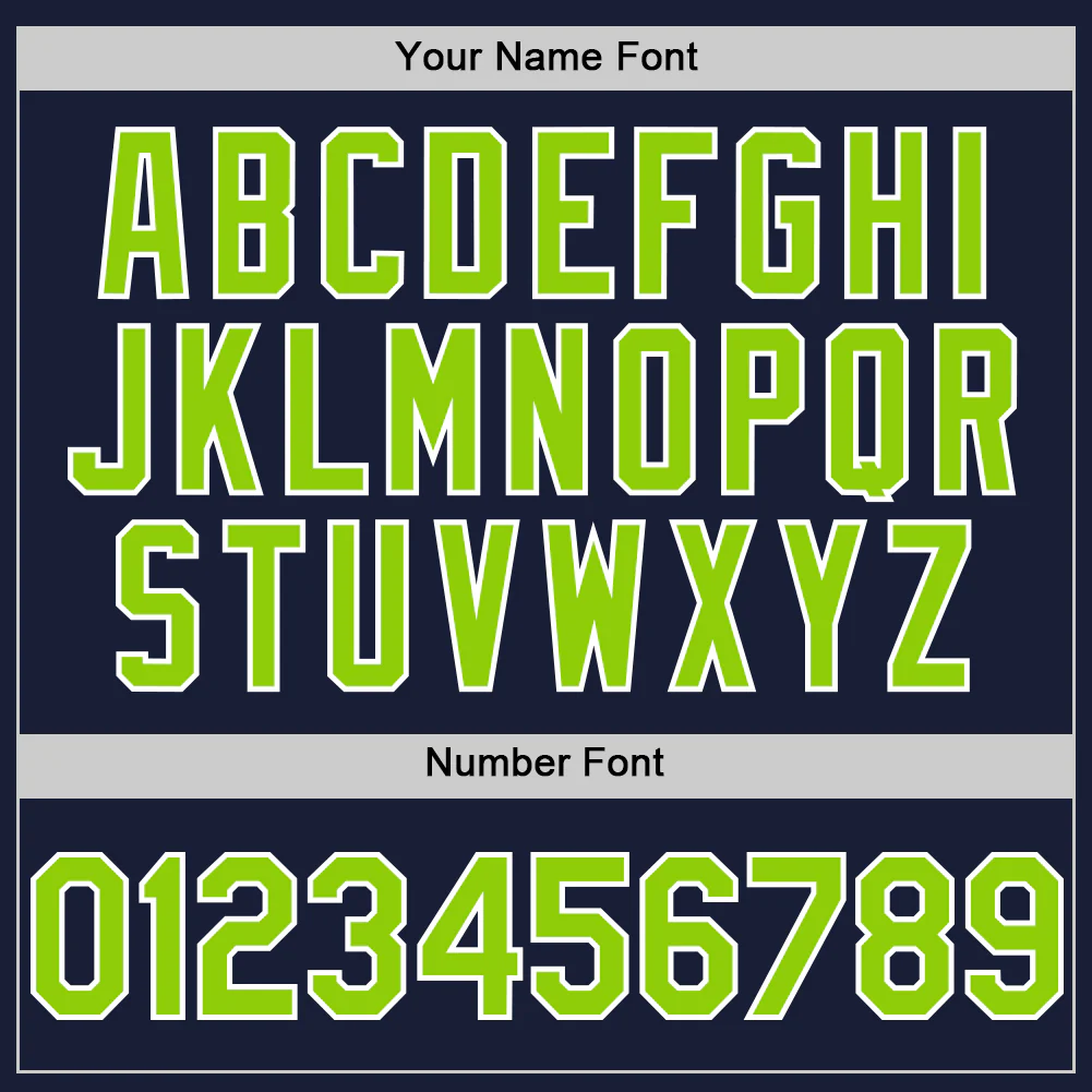 Custom Navy Neon Green-White Bomber Full-Snap Varsity Letterman Hoodie Jacket