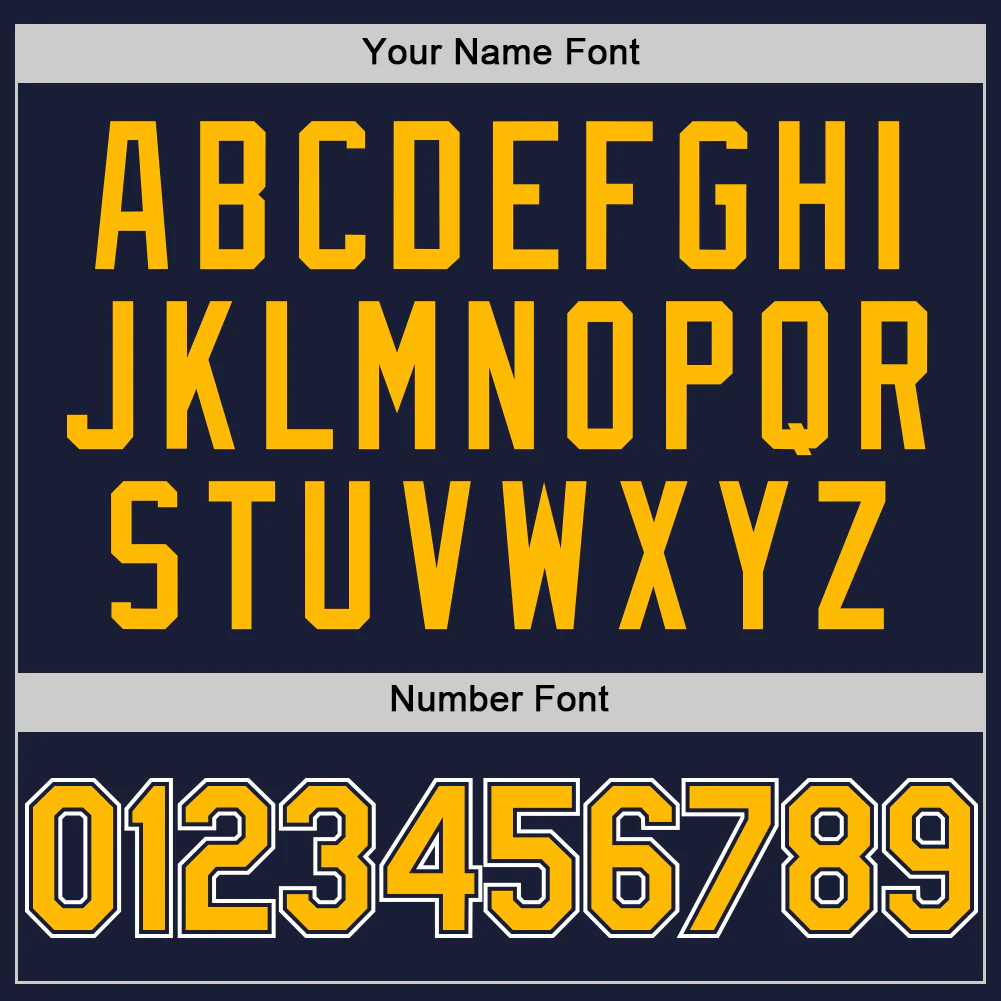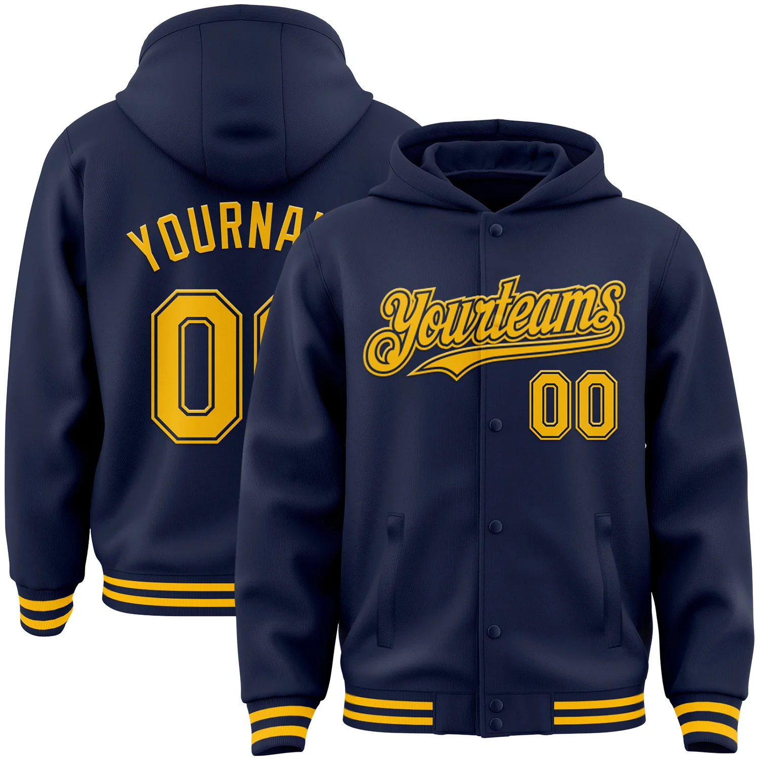 Custom Navy Gold Bomber Full-Snap Varsity Letterman Hoodie Jacket
