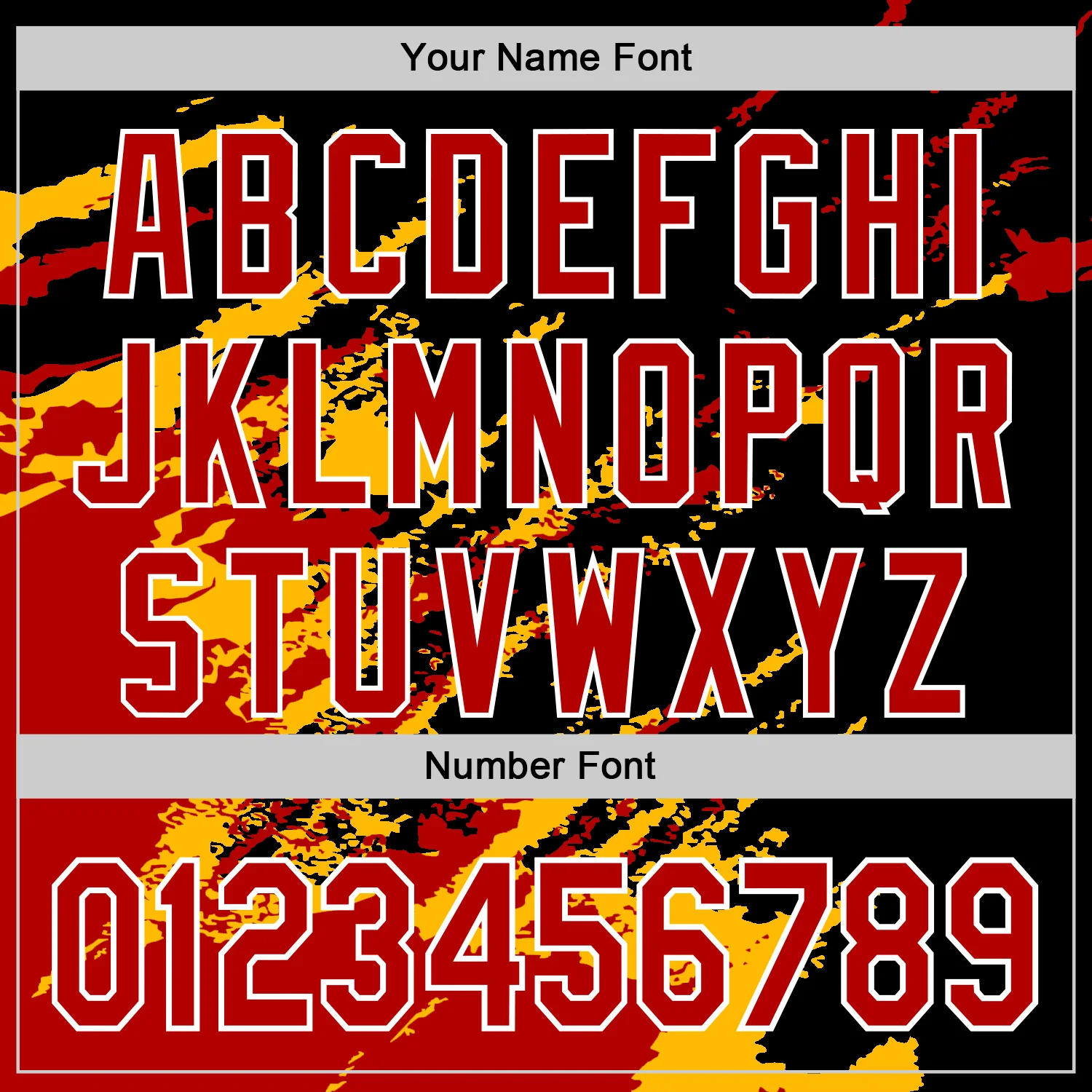 Custom Black Red Gold-White Splash Art 3D Pattern Design Bomber Full-Snap Varsity Letterman Hoodie Jacket
