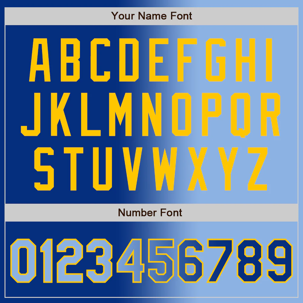 Custom Royal Light Blue-Yellow Bomber Full-Snap Varsity Letterman Gradient Fashion Jacket
