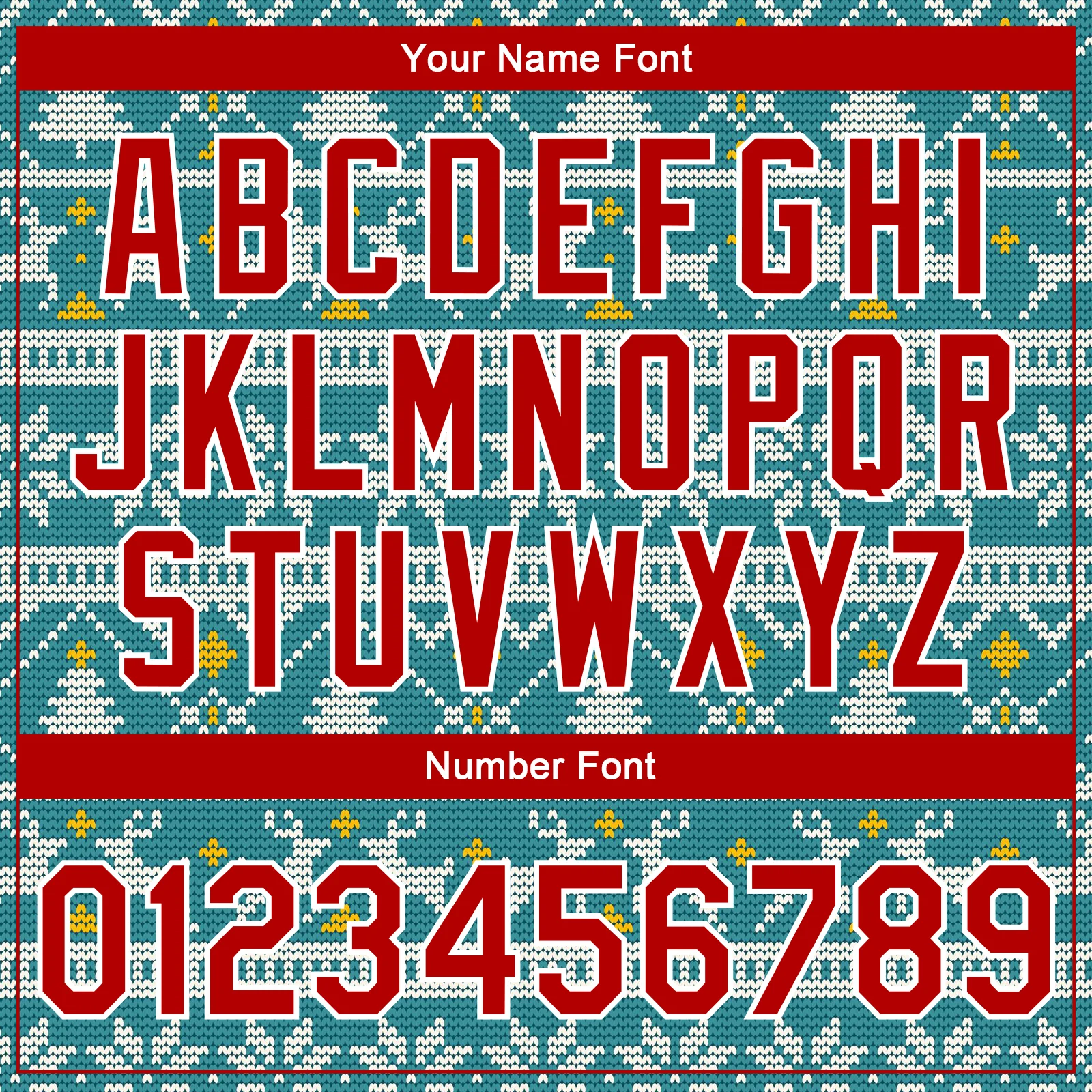 Custom Teal Red-White Christmas 3D Bomber Full-Snap Varsity Letterman Jacket