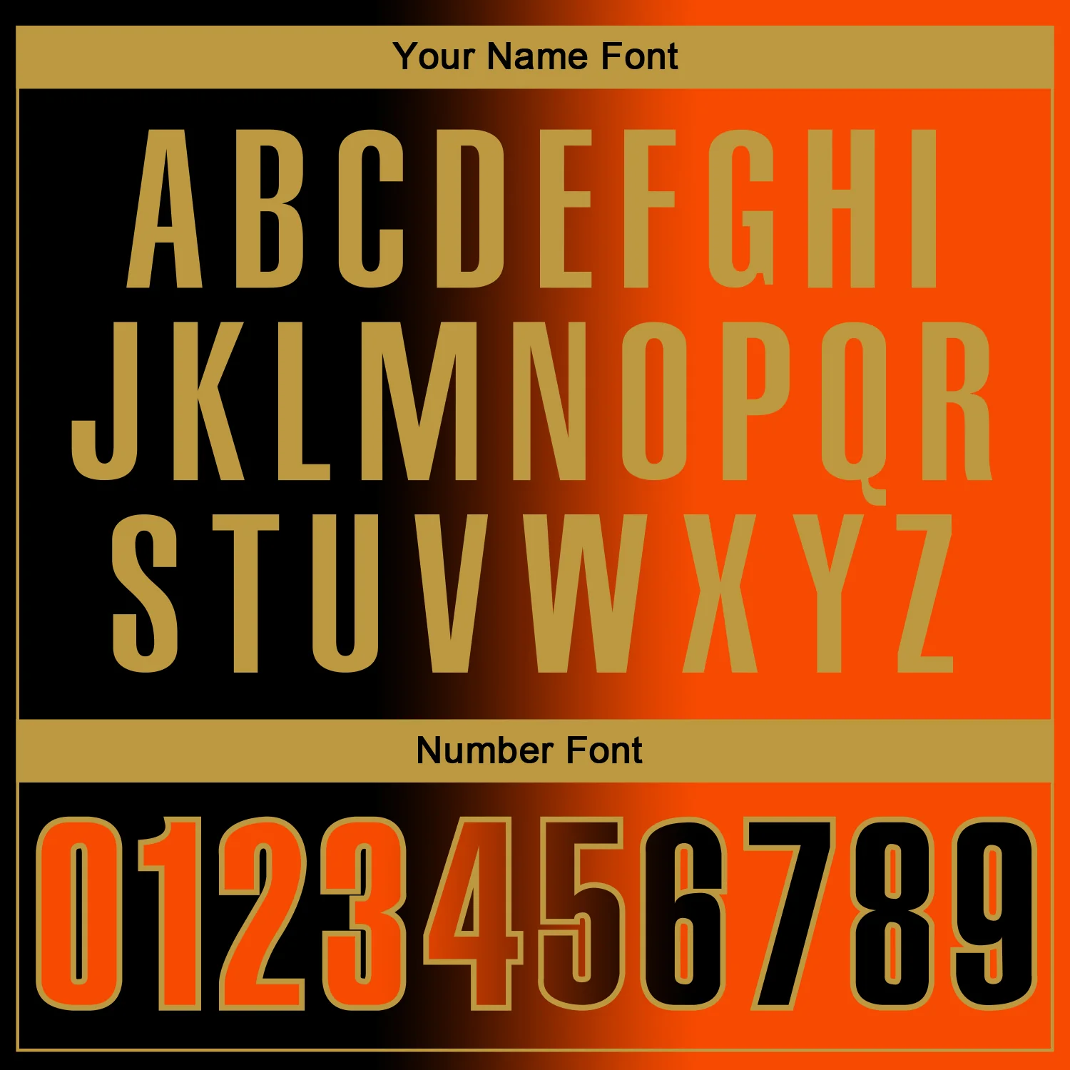 Custom Black Orange-Old Gold 3D Gradient Fashion Performance Polo Shirt