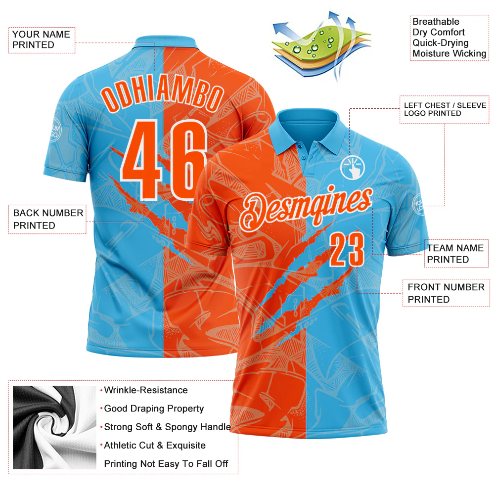 Custom Graffiti Pattern Orange Sky Blue-White 3D Scratch Performance Polo Shirt