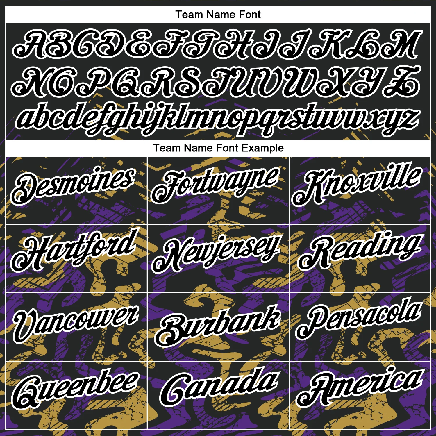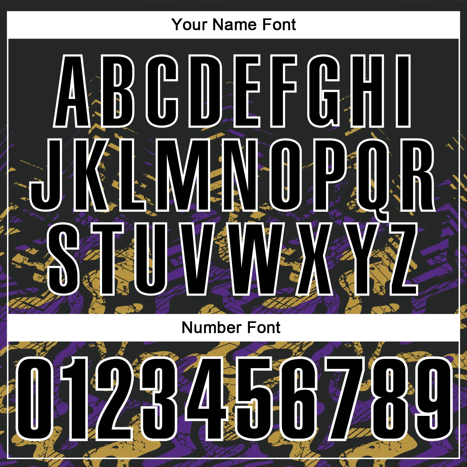 Custom Black Purple-Old Gold 3D Bowling Abstract Grunge Art Performance Polo Shirt