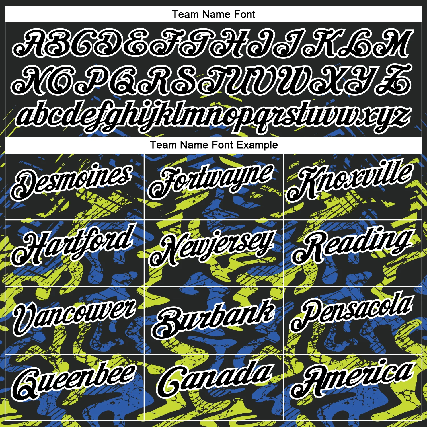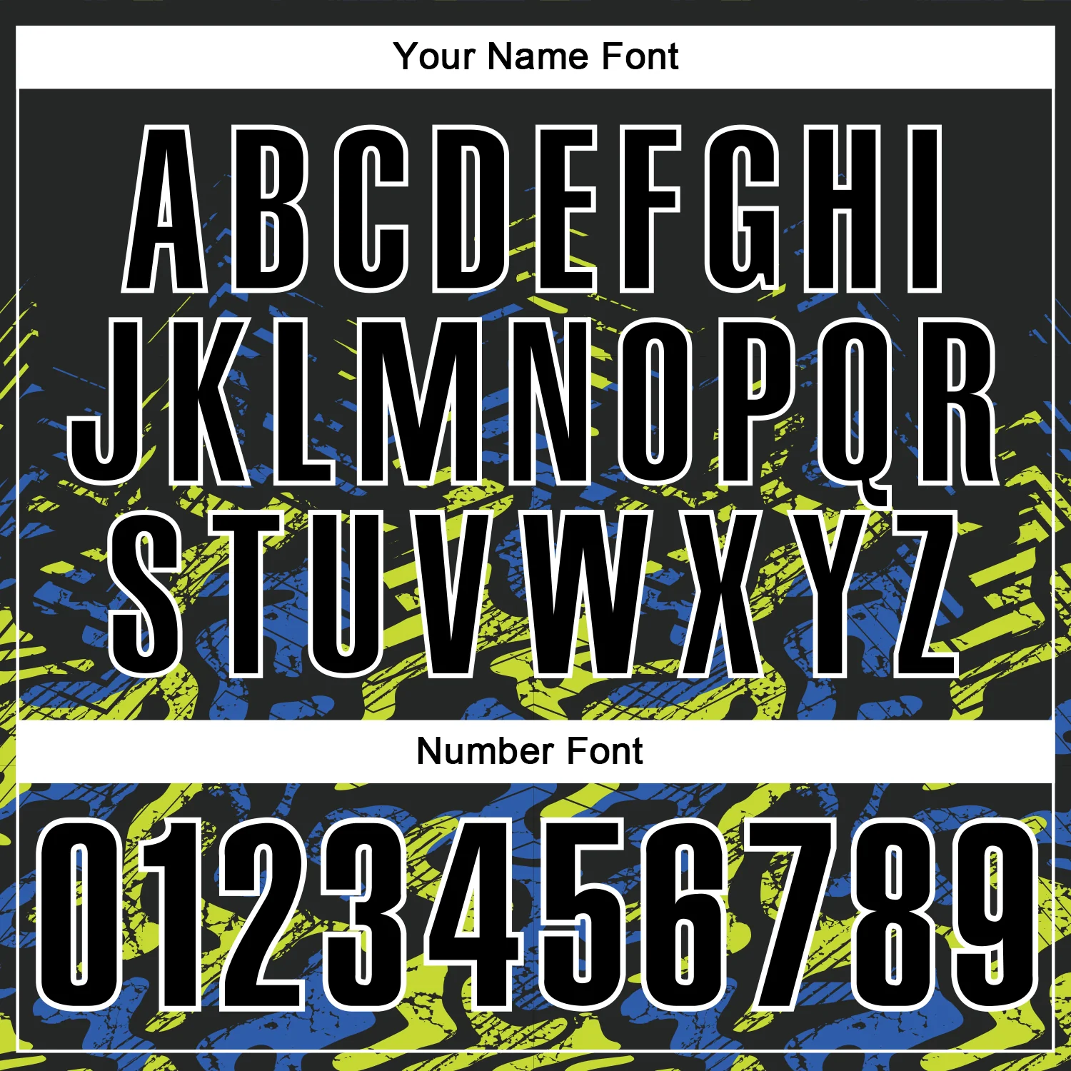 Custom Black Royal-Neon Yellow 3D Bowling Abstract Grunge Art Performance Polo Shirt